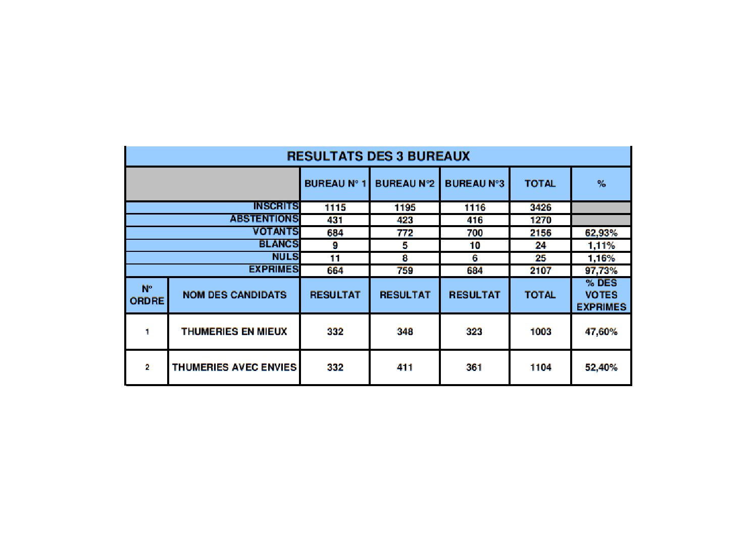 Résultats des élections municipales du 15 mars 2026